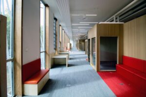 Vue extérieure d'une salle de travail en groupe