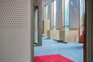 Vue depuis une salle de travail en groupe